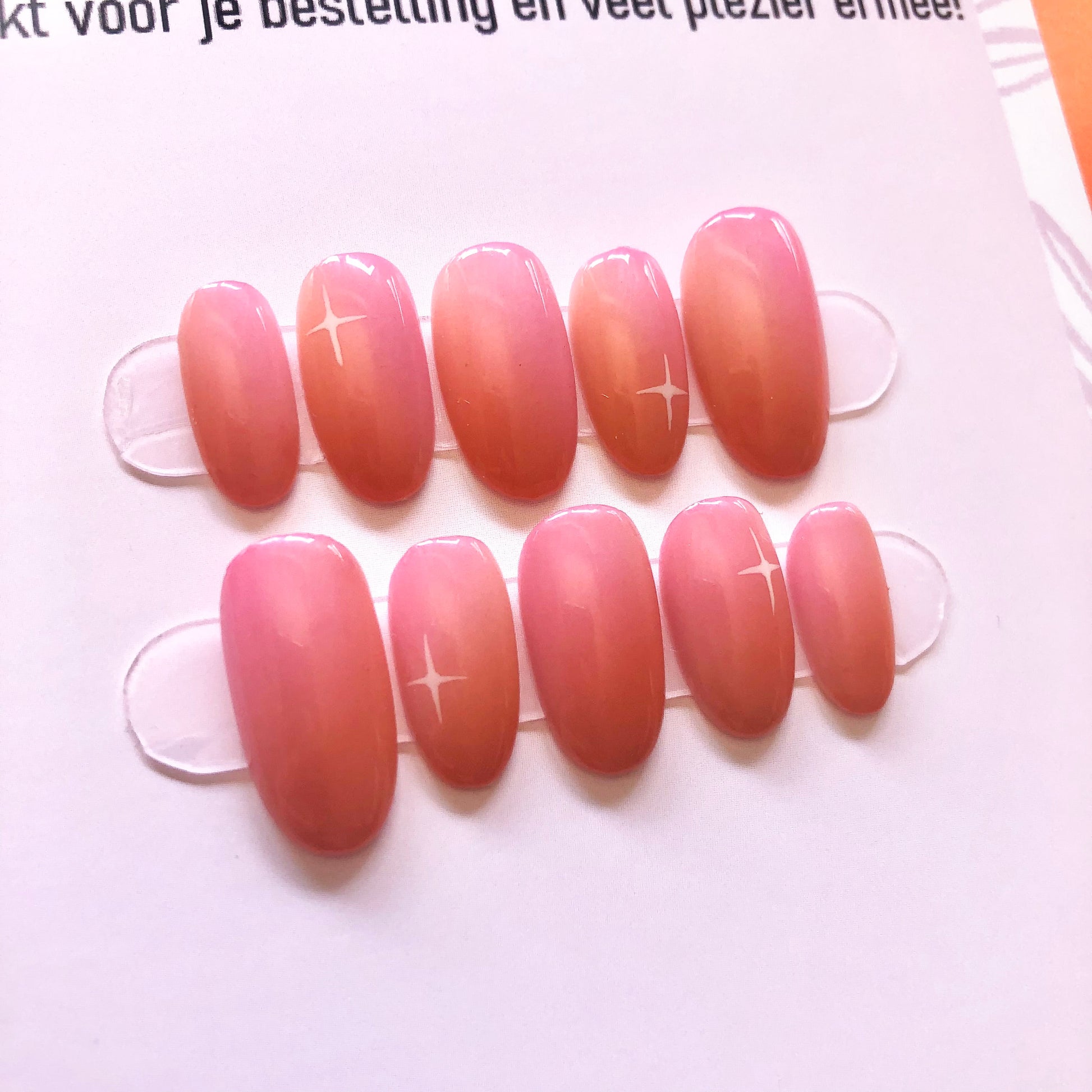 Blossom is een roze-oranje ombre set met witte sterretjes.
