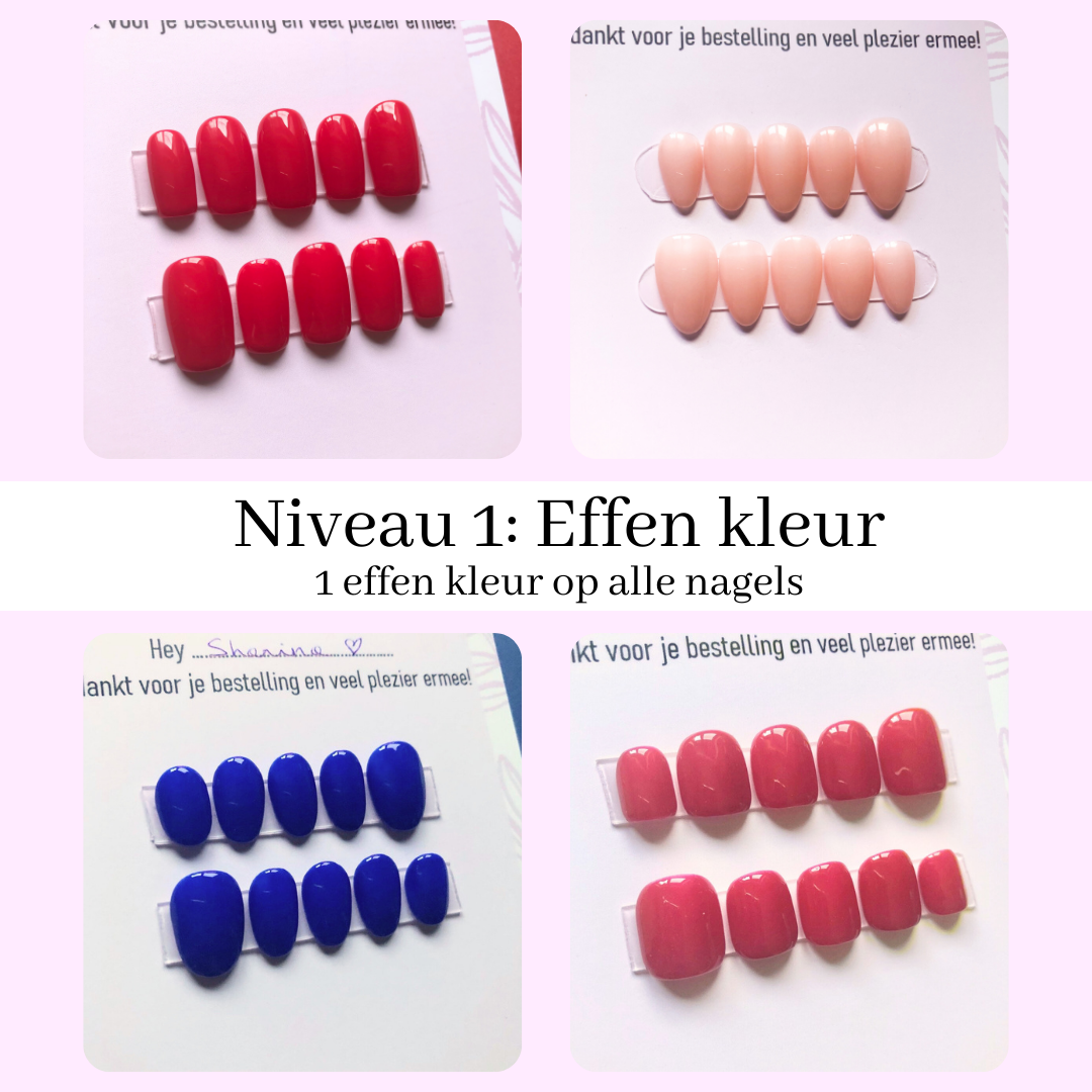 Voor de lengte van de plaknagels kan je uit 4 standaard lengtes kiezen, of je kan zelf je gewenste lengte doorgeven.