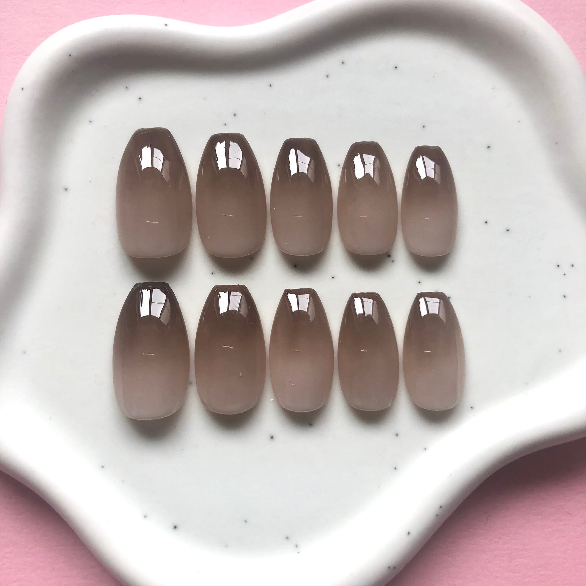 Deze set bevat 24 handgemaakte plaknagels in verschillende maten.