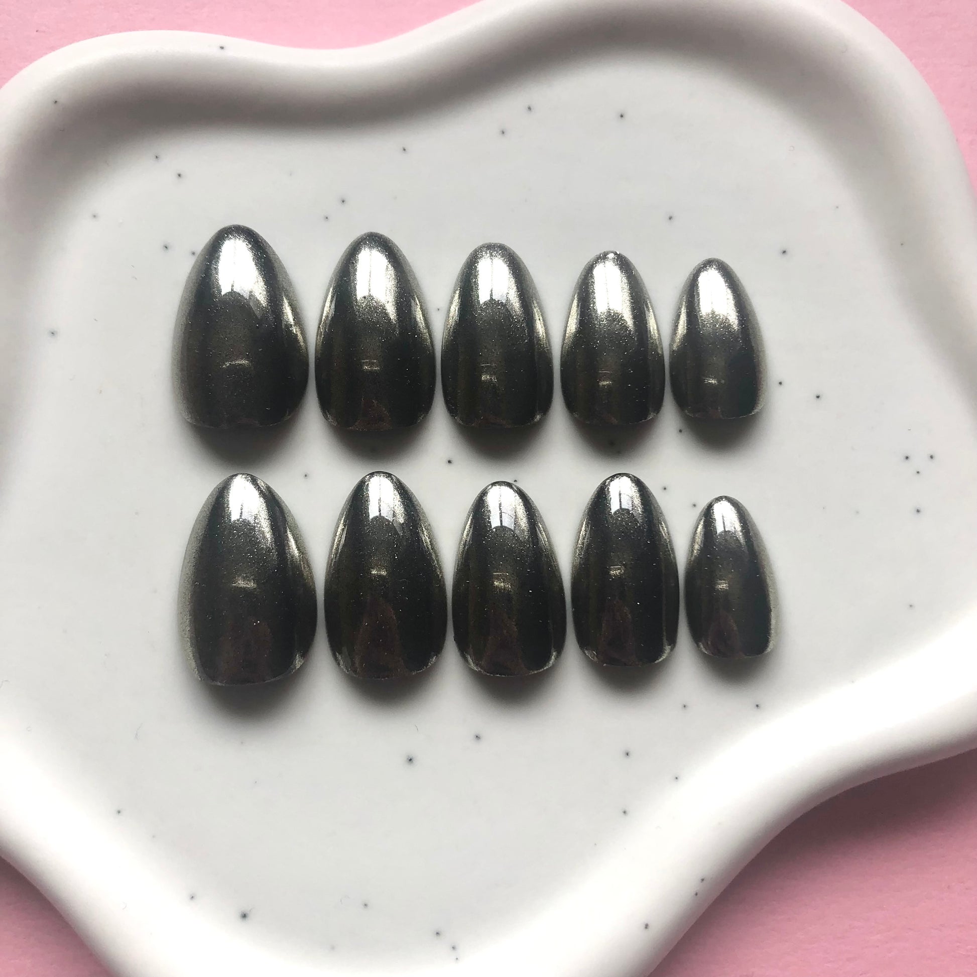 Deze set bevat 24 handgemaakte plaknagels in verschillende maten.